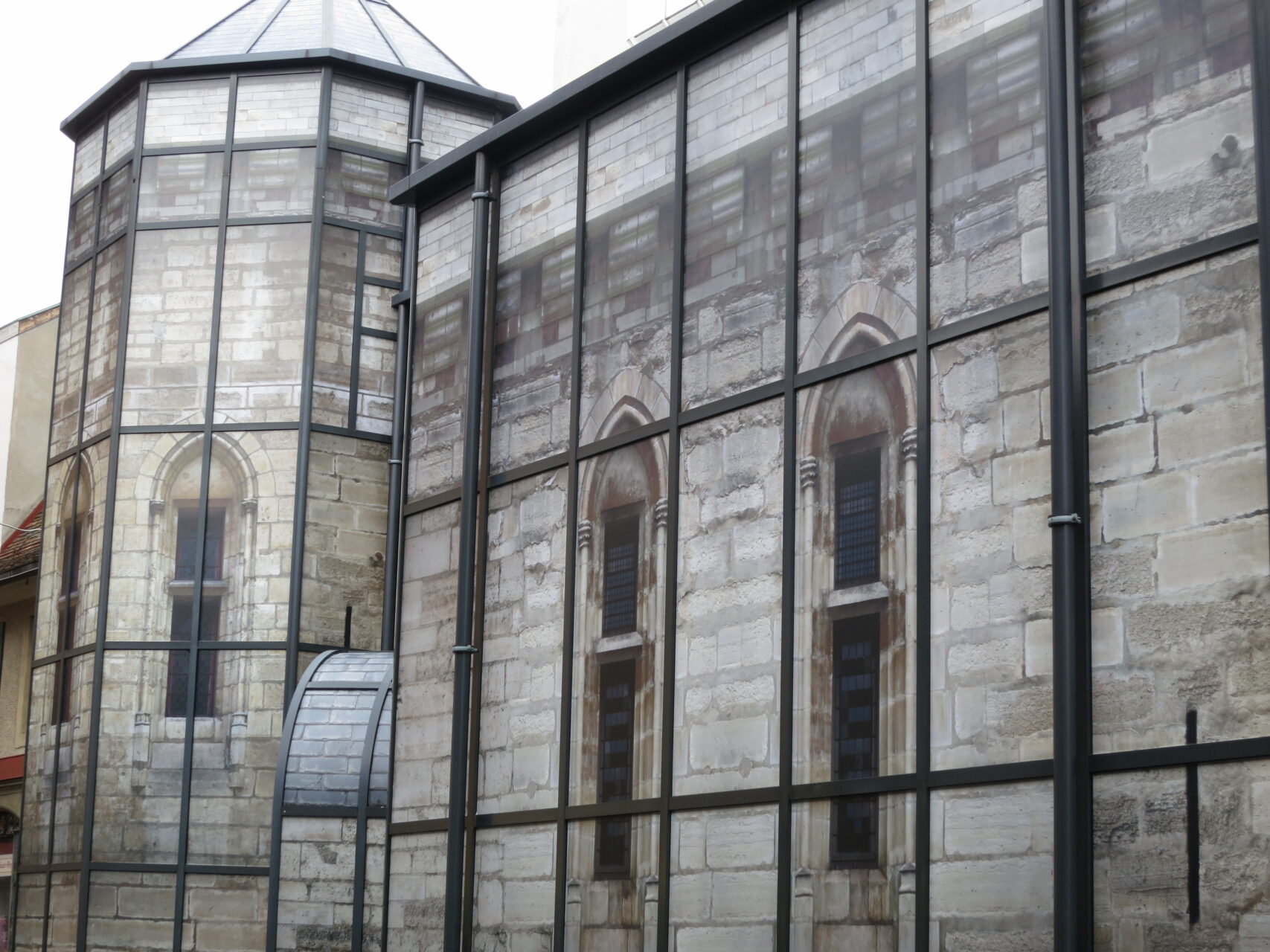 Conçue spécialement à l’occasion de la Biennale Images Vevey, l’installation Castle propose une réflexion sur l’art de la dissimulation en appliquant plus d’une centaine d’images de façades de châteaux de la Renaissance française sur la verrière du théâtre municipal de Vevey. Par cet acte de téléportation photographique, Jeanne Susplugas (France, 1974) et Alain Declercq réinterprètent l’architecture extérieure du bâtiment – dont la tour rappelle celle d’une forteresse – qui apparaît sous un nouveau jour aux yeux des Veveysans, comme un décor de théâtre sorti de scène.