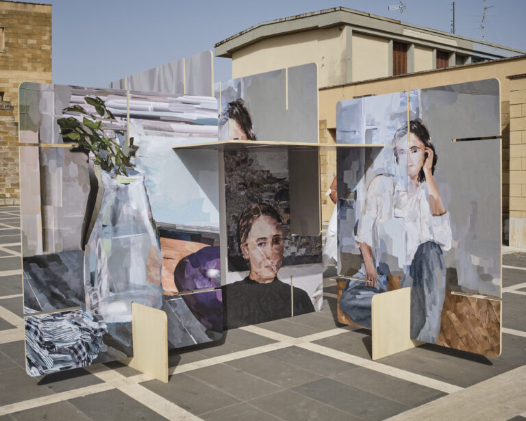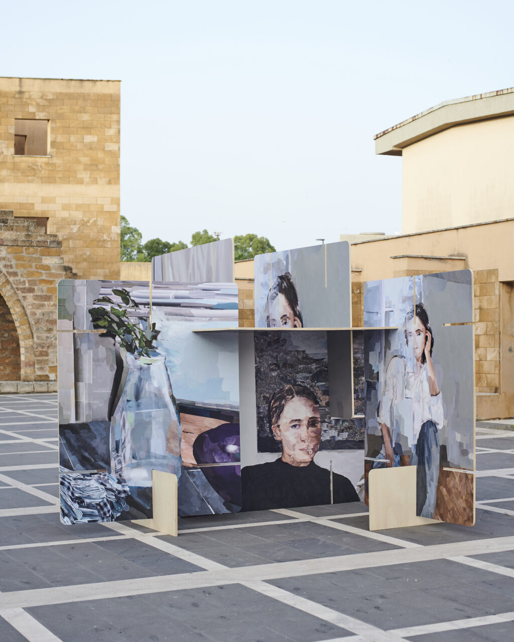 Après une première présentation internationale à la Biennale Images Vevey en 2020, Alina Frieske prolonge la série Abglanz à Images Gibellina, qu’elle adapte et compose spécifiquement pour le contexte du festival. À partir de centaines de fragments prélevés sur le web, l’artiste assemble des images comme des pièces de puzzles mêlées. Ses collages numériques, proches de la peinture par leur minutie, explorent la multiplicité et la manière dont le familier se recompose dans l’amas d’images circulant en ligne. En juxtaposant œuvres finalisées, découpes et images en cours, Abglanz révèle un geste patient de réassemblage, où les contours se fondent et les motifs se répètent, invitant à questionner ce qui reste identifiable lorsque les images s’imitent mutuellement.