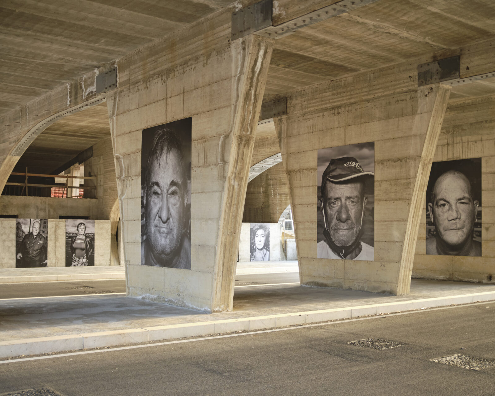 Pour Images Gibellina, Bruce Gilden ramène la photographie de rue à son origine : l’espace public. Ses images, nées au milieu du bruit urbain, quittent le cadre du tirage pour devenir architecture, transformant la ville en galerie à ciel ouvert. Maître du portrait frontal et incisif, Gilden extrait de ses rencontres fortuites une intensité brute : visages, gestes et postures restituent la pulsation des villes et l’incertitude des jours. À Gibellina, cité utopique marquée par le béton et la mémoire du séisme, ses photographies prennent une ampleur nouvelle. Installées dans le théâtre inachevé de Consagra, elles composent un récit visuel fait de regards directs, de présences troublantes et d’histoires entrevues. Issues de prises de vue réalisées à Palerme, Rome, Milan ou spécialement commandées en Sicile, ces images offrent un portrait sans artifice de l’Italie contemporaine, où la rue devient miroir et promesse de renouveau.