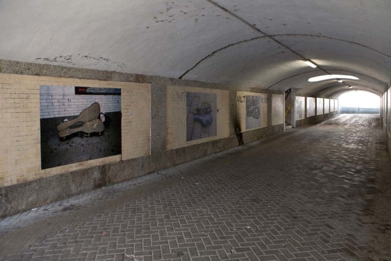 Président du Grand Prix Images Vevey 2017/2018, Christian Marclay a photographié au gré de ses déplacements des étuis d’instruments de musiciens de rue contenant de la petite monnaie. Bien que silencieuses, ces images sont habitées d’une dimension sonore : de l’instrument absent figurant l’air qui se joue au tintement de la ferraille des piécettes. À l’occasion de la Biennale Images Vevey, sa série Street Music, 2002-2012 est exposée dans un passage souterrain de la gare, lieu de prédilection des croque-notes profitant de la générosité des pendulaires. En présentant ses photo-graphies à cet endroit, le « plasticien de la musique » se doutait bien qu’elles serviraient finalement de partitions aux tagueurs de la région. En marge de ce projet, Shuffle, un jeu de cartes conçu par l’artiste, fait l’objet d’une performance musicale de l’ensemBle baBel.