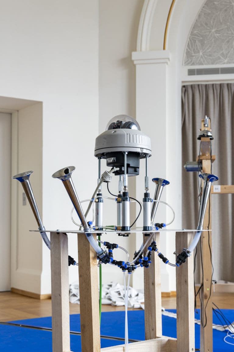 Entre photographie, sculpture et performance, 4 Photographers est une installation expérimentale conçue par Clemens Fischer pour Images Vevey. Dans la lignée du duo Peter Fischli et David Weiss, l’artiste bricole divers matériaux récupérés (structures en bois, tiges métalliques ou encore fils électriques) qu’il assemble à toutes sortes de caméras et d’appareils photos analogiques. Des machines ingénieuses s’actionnent bruyamment comme par magie. Fischer transforme les appareils photo en acteurs autonomes : ils interpellent le public, provoquant un malaise face à l’incertitude d’être photographié·e à l’improviste.