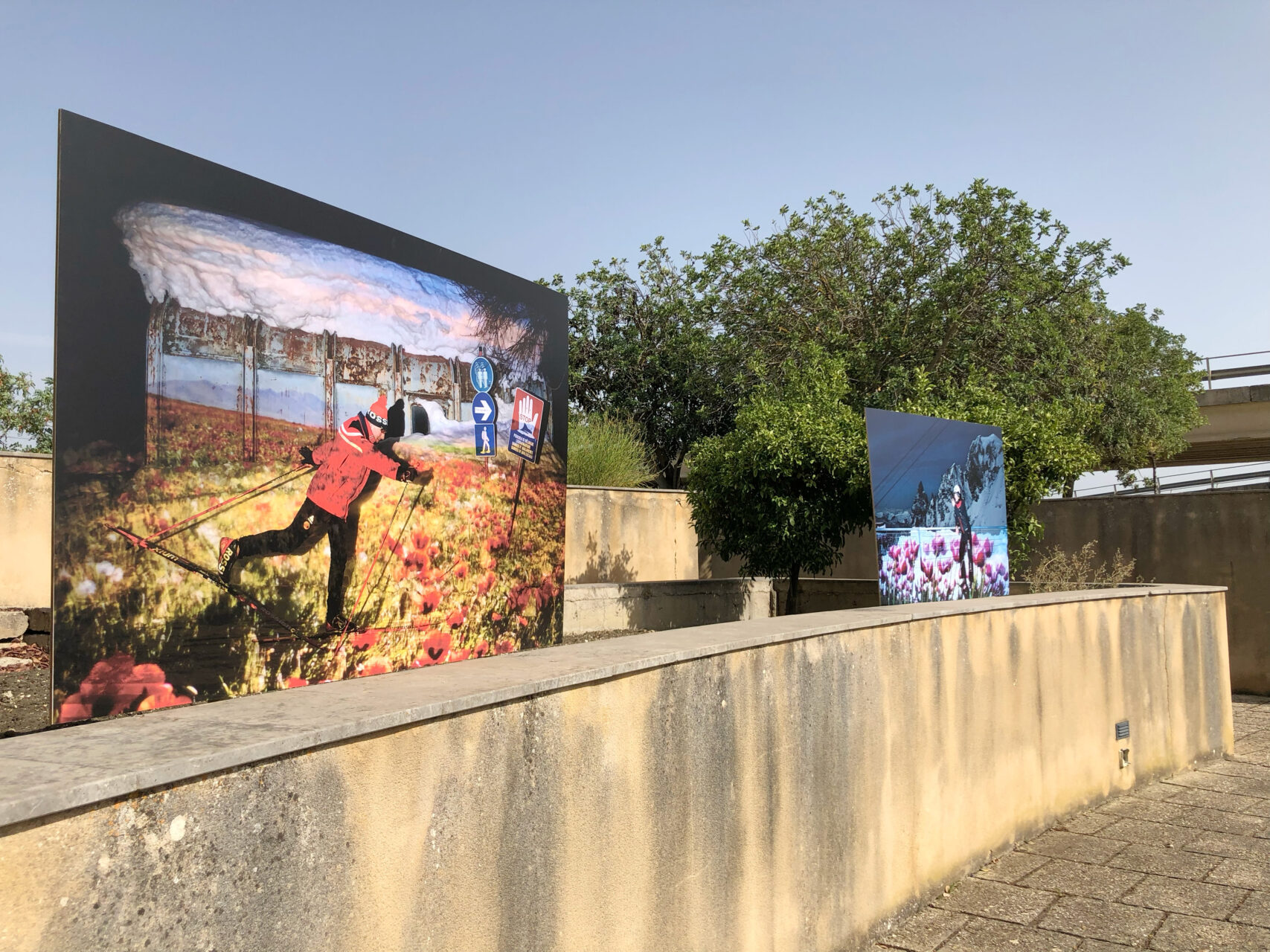 Après avoir présenté le premier volet de leur série Atlas of the New World à la Biennale Images Vevey en 2020, le duo Edoardo Delille et Giulia Piermartiri propose à Images Gibellina le deuxième chapitre de ce projet ambitieux. Dans la vallée de Val Ferret, au pied du glacier de Planpincieux, la fonte accélérée du massif du Mont-Blanc transforme un paysage autrefois symbole de permanence. Face à un glacier fragilisé par le réchauffement climatique, les artistes projettent des images de prairies en fleurs sur la neige et les villages enneigés. Ces superpositions font coexister deux temporalités : celle, familière, des hivers alpins et celle d’un avenir où glaciers et activités liées à la neige pourraient disparaître. Flowering Heights associe ces projections à des portraits d’habitant·e·s dont la vie est étroitement liée à la montagne, invitant à réfléchir à la métamorphose d’un territoire que l’on pensait immuable.