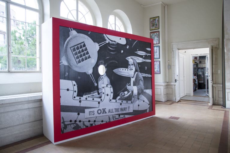 Depuis plus de 35 ans, le Français Jean-Marie Donat constitue une immense collection de photographies trouvées au hasard des marchés aux puces et des salles de ventes. Il rassemble ensuite ces photographies vernaculaires thématiquement dans de surprenantes publications. La série présentée à la Biennale Images Vevey est constituée d’une collection de paysages montagneux se reflétant dans des plans d’eau. Donat a l’ingénieuse idée de renverser ces photographies à la verticale. Soudain, la symétrie créée par le miroir de l’eau produit des visuels abstraits évoquant le fameux test de Rorschach. Dans les années 1920, le psychiatre suisse éponyme est le premier à en faire un outil de psychologie clinique. Les taches symétriques sont soumises aux patient·e·s qui en font une interprétation libre. Ce qu’il·elle·s voient dans les formes abstraites permet d’évaluer leur personnalité. Par un simple geste de rotation, Donat invite le public de la biennale à faire ses propres interprétations en plein air, face à l’un des plus beaux panoramas du Lac Léman.
