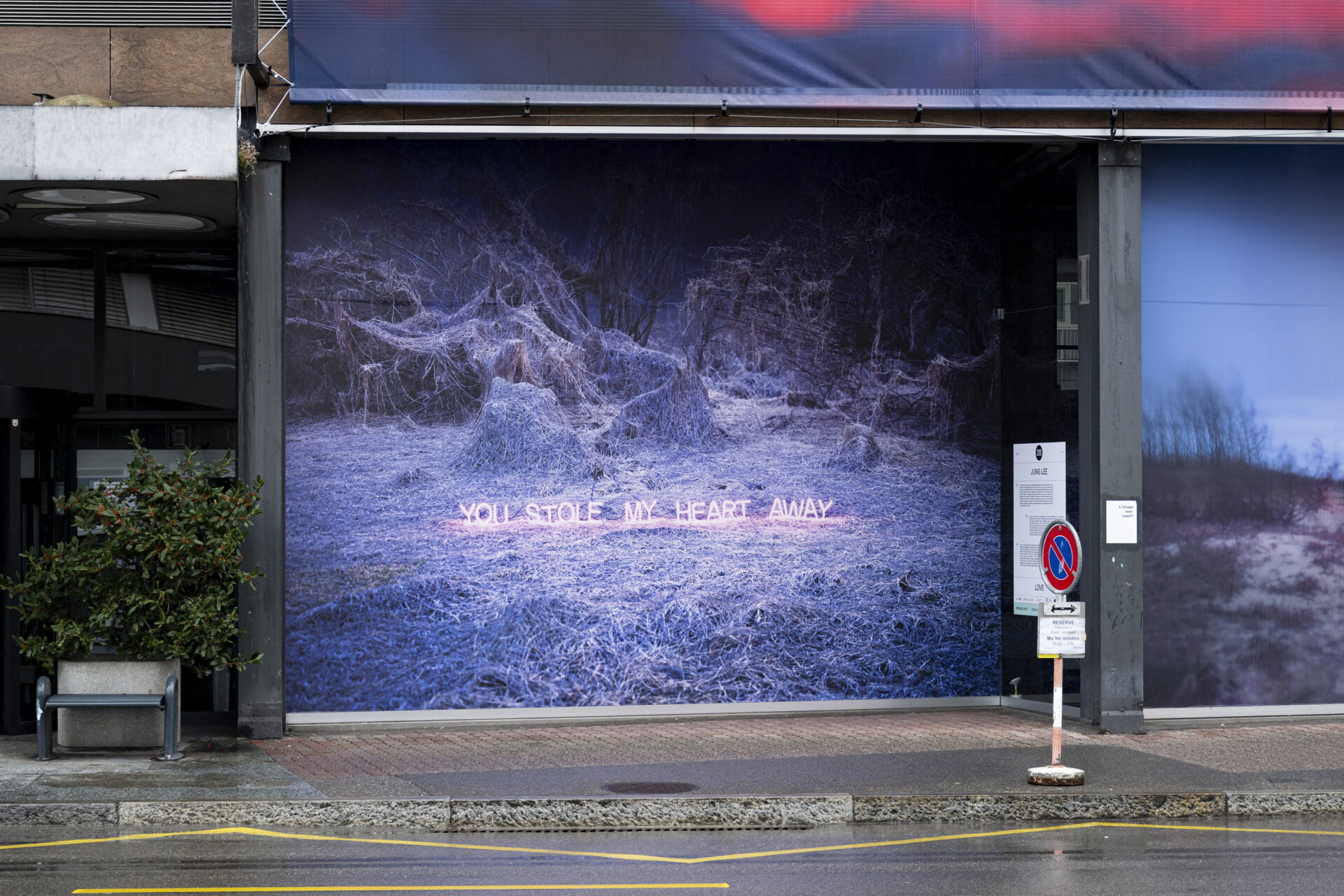 Jung Lee est connue pour ses photographies d’installations formant des textes en néon placés au sein de paysages variés de la Corée du Sud. En opposant des phrases sentimentales à des espaces austères, elle crée des messages chargés d’émotion. S’inspirant de l’essai Fragments amoureux rédigé par Roland Barthes en 1977, elle analyse cet état intense : le désir non réciproque, qui symboliserait l’amour total pour un·e amant·e et le·la plongerait dans une profonde solitude. Ces expressions conventionnelles de l’amour et de l’aversion deviennent de puissantes proclamations. Avec LOVE, Lee rend hommage au célèbre artiste Robert Indiana. Ce mot domine l’environnement comme une présence iconique et idéalisée. L’installation monumentale explore avec sensibilité ce sentiment aussi essentiel qu’universel.
