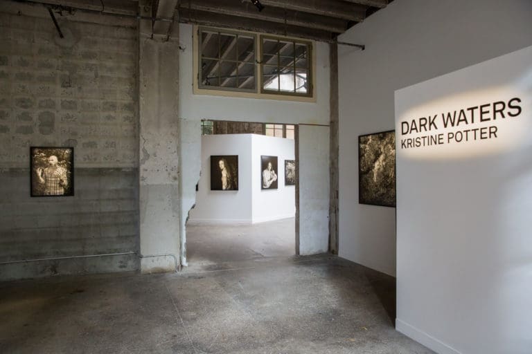 Dark Waters est une réflexion de Kristine Potter sur la violence qui imprègne le territoire et la culture populaire du sud des États-Unis. L’artiste américaine juxtapose une série de portraits de femmes à des plans d’eau à l’apparence sereine. Il s’agit en réalité des lieux-dits portant des appellations sordides telles que Murder Creek (« Ruisseau du meurtre »), Bloody River (« Rivière sanglante ») ou Rape Pond (« Étang du viol »). Ces noms reflètent les violences subies lors de la colonisation et font plus généralement partie de la mythologie du sud du pays. L’artiste, qui détourne le sujet photographique classique du paysage américain, s’inspire des murder ballads, chansons traditionnelles des Appalaches comportant des descriptions crues de femmes battues et assassinées. Établie à Nashville, temple de la musique américaine, l’artiste complète son projet avec une installation vidéo réalisée avec des musiciens de la scène locale. Potter invite le public à pénétrer dans l’obscurité d’une salle de concert pour vivre une expérience musicale complexe, aussi fascinante que déroutante. Bien que cette proposition se fonde sur une culture et un territoire spécifiques, ses implications s’appliquent de façon universelle aux messages violents et genrés qui émaillent insidieusement la culture populaire contemporaine.