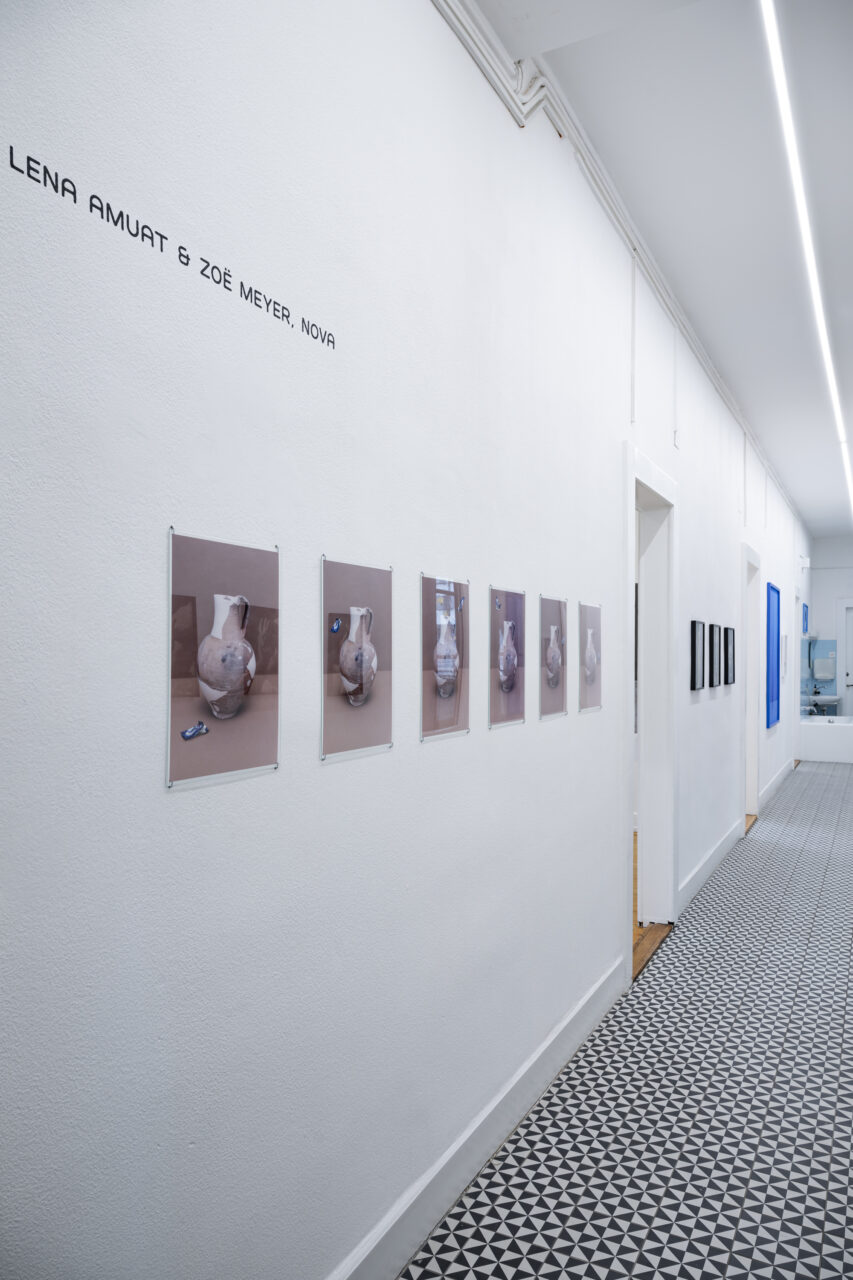 Avec l’installation Nova, Lena Amuat & Zoë Meyer investissent les trois chambres de L’Appartement avec des images issues de leurs séries photographiques en constante évolution. Depuis 2009, elles photographient des objets scientifiques, historiques ou pédagogiques, sortis de leur contexte. La première chambre présente des objets confisqués par la douane, exposés comme des curiosités dénués de leur fonction ou signification initiale. La deuxième chambre évoque l’atelier du duo d’artistes, réunissant des modèles de recherches scientifiques, des livres et des photographies prises à travers un prisme. La troisième montre des objets muséaux disparus : découpés et détourés, ils deviennent des ombres du passé. Le Couloir présente des images surprenantes manipulées physiquement et numériquement. Tel l’éclat soudain d’un astre invisible, Nova forme un musée fictif et domestique, où l’image agit comme un fragment de mémoire.