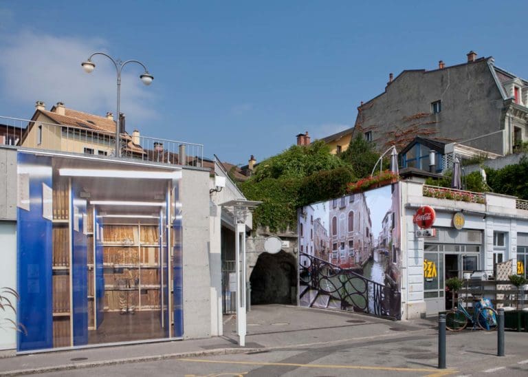 Jouant de son corps comme d’une sculpture vivante, Liu Bolin se fond tel un caméléon dans ses photographies en se faisant maquiller précisément avec les couleurs du décor devant lequel il pose. En cherchant une adéquation entre les œuvres et leur lieu d’exposition, une douzaine d’images de la série Hiding in the City sont reproduites à l’occasion de la Biennale Images Vevey en format monumental – l’une d’elles mesure près de 500 m2 – sur différentes façades et rues de Vevey. Revu à grande échelle, son travail sensibilise le spectateur à l’omniprésence des images dans l’espace public, et sur la manière dont elles sont utilisées par les pouvoirs politiques et économiques.