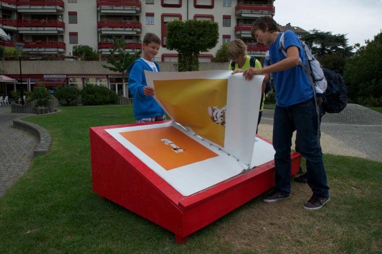 Mike Stimpson recrée en LEGO des photographies célèbres : il réinterprète ainsi avec malice les clichés légendaires de Capa ou Cartier-Bresson, ainsi que des images gravées dans la mémoire collective comme celles de cet étudiant chinois barrant la route à un char sur la place de Tian’anmen en 1989 ou de la prise d’Iwo Jima en 1945. À l’occasion du Festival Images, ces reconstitutions sont présentées dans un livre géant installé en extérieur, au milieu d’une place de jeux pour enfants, invitant les petits comme les grands à découvrir de manière ludique les pages les plus importantes de l’histoire de la photographie.