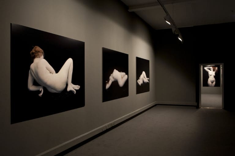Avec la série Bodies, 6 Women, 1 Man, présentée en première internationale à l’Espace Images, Nadav Kander remet au goût du jour le genre photographique du nu, qui a aujourd’hui pratiquement disparu des expositions alors que la nudité est omniprésente dans le cinéma, la publicité ou sur internet. Devant un fond noir, ses modèles sont maquillés d’une fine couche blanche, figés dans des postures évoquant la peinture classique. La pâleur de leurs corps et leurs visages détournés de l’objectif opèrent une mise à distance chez le spectateur, tout en interrogeant les canons de beauté de la société occidentale.