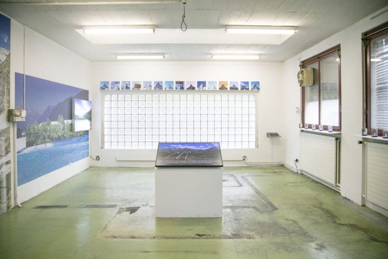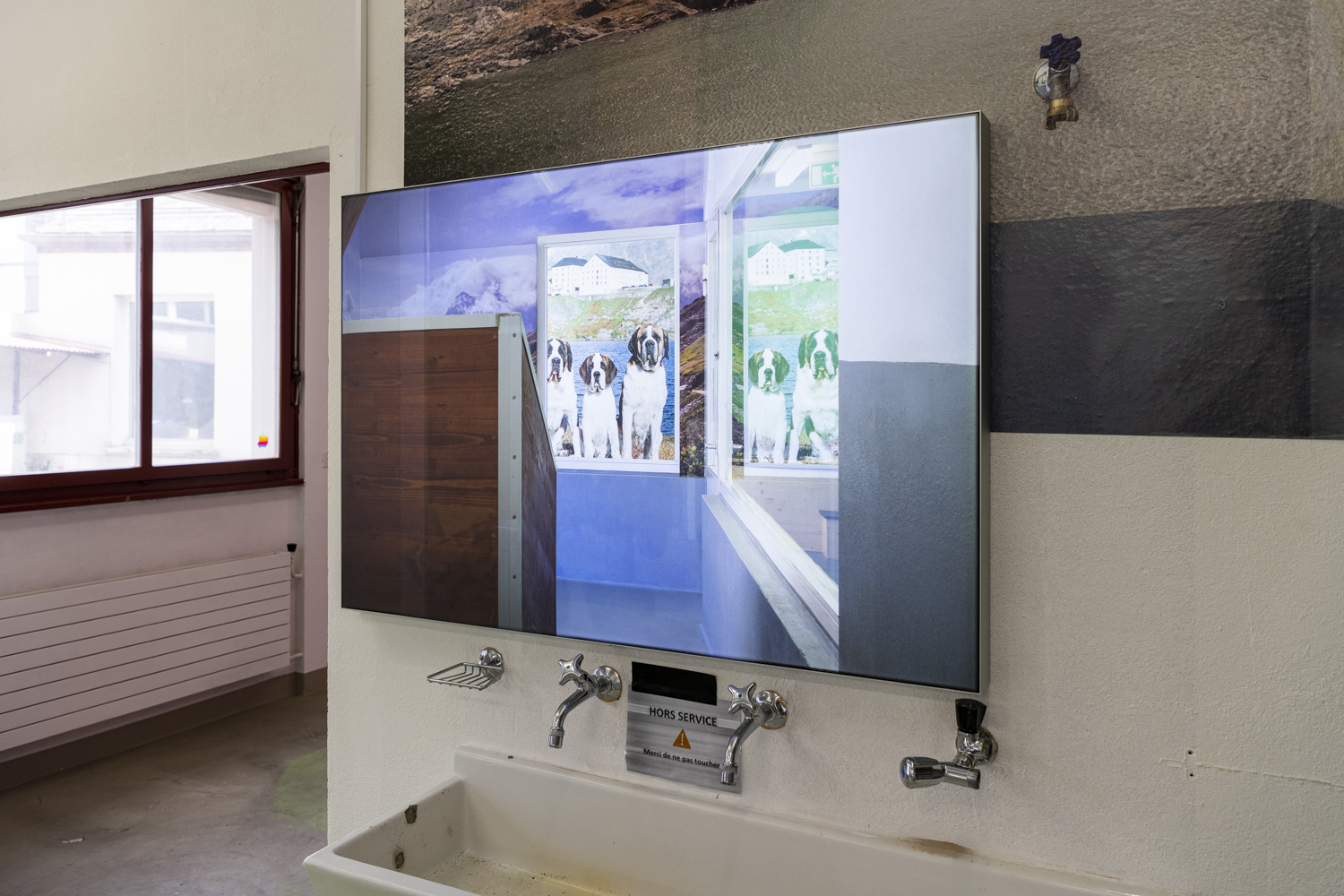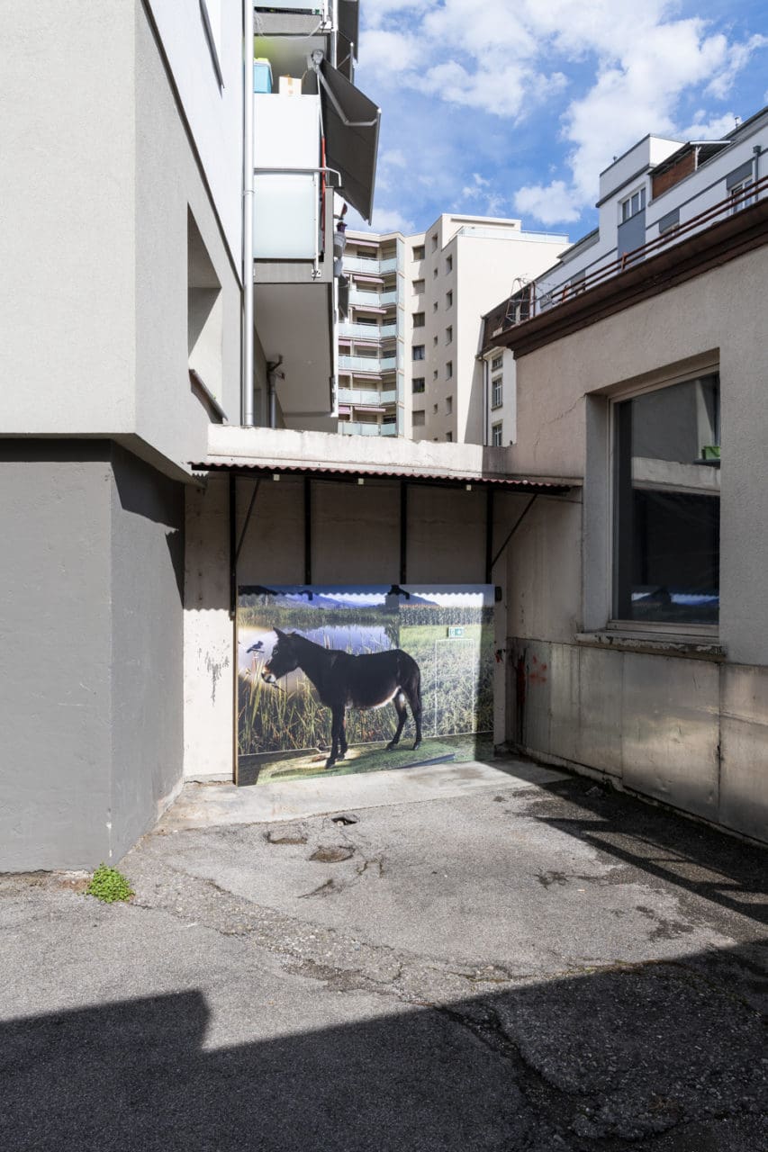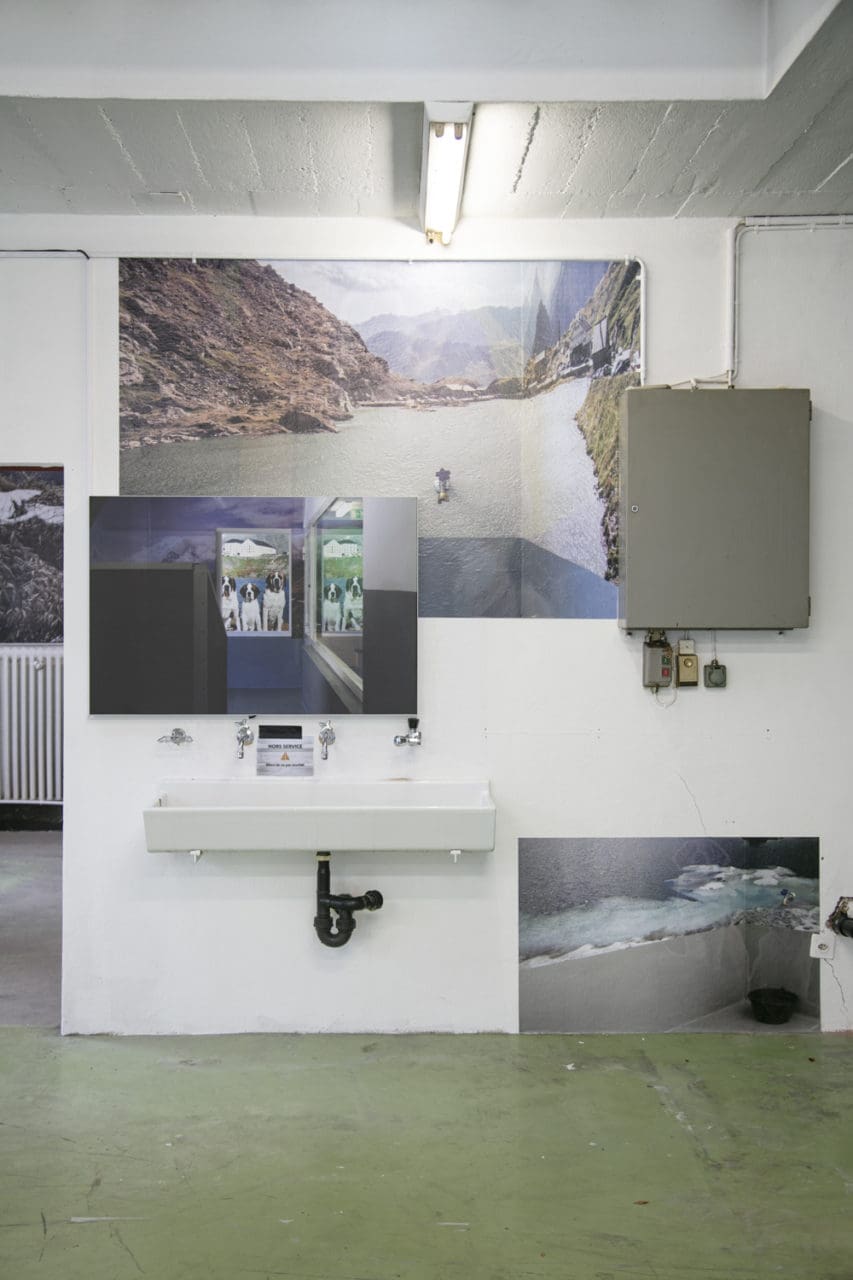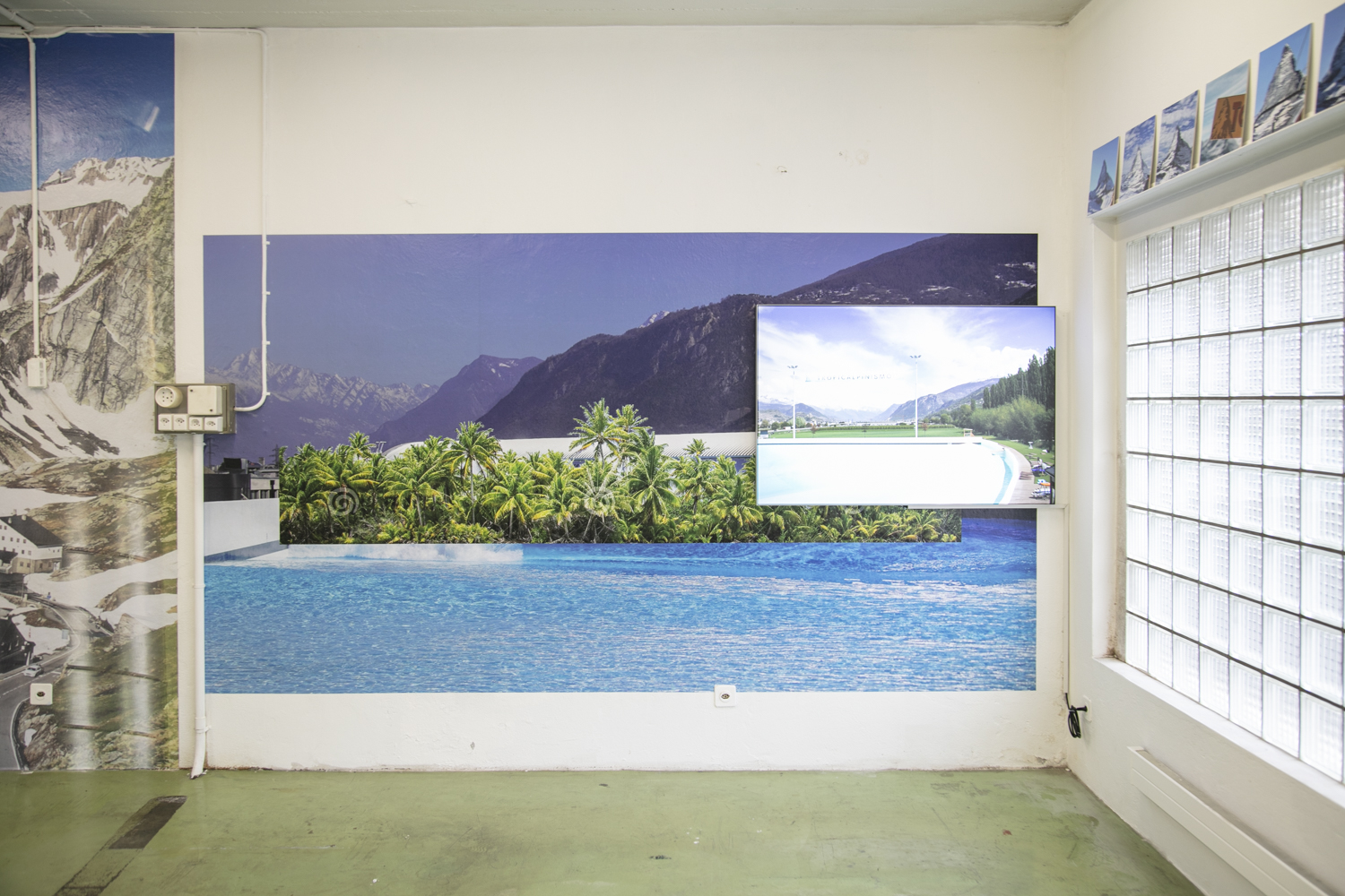 La confrontation de deux contextes opposés est au cœur de l’installation Tropicalpinisme réalisée par Sergio Pinzón. En 2022, le photographe colombien séjourne à Monthey dans le cadre d’une résidence artistique du programme SMArt en collaboration avec Images Vevey et la Galerie du Crochetan. Durant trois mois, il s’intéresse aux infrastructures touristiques et aux lieux qui recréent des environnements tropicaux ou qui proposent artificiellement des activités pourtant réalisables en pleine nature. Un solarium, des canons à neige, des simulateurs de vagues : autant de déclinaisons d’une Suisse paradoxale. En Colombie, les vagues sont naturelles, le soleil gratuit et la neige exceptionnelle. Portant un regard amusé sur la Suisse, Pinzón tisse un lien entre le développement de ces technologies et le réchauffement climatique, en particulier autour de la question de l’eau.
