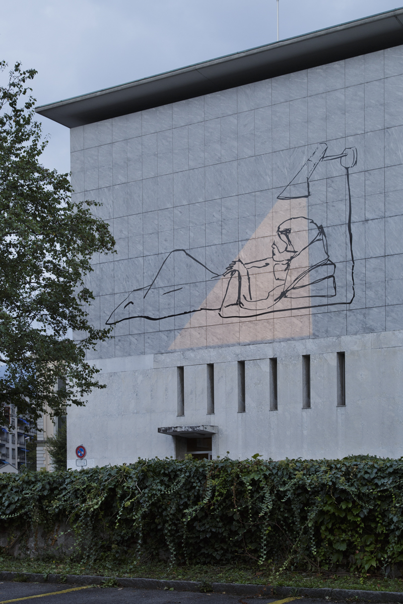 Zilla Leutenegger réalise des dessins et installations qui rejouent des scènes intimes ou domestiques. Elle se met en scène pour mimer des histoires drôles et tendres illustrant son rapport au monde. Le Musée Jenisch Vevey propose dans ses murs Zig Zag Stoel et Rodeo Z, deux installations interactives qui s’inspirent des codes du western américain, tandis que son dessin monumental Schlafbrille s’anime la nuit tombée sur la façade de la caserne des pompiers, prolongeant dans la rue cette réflexion entre espace intérieur et extérieur, entre jeu et dessin.