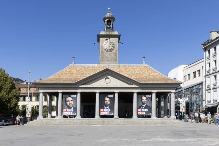 Using posters, videos, and doctored images to bring a replica of his campaign office to Vevey, Daniel Mayrit warns against manipulation of the masses jeopardising the equilibrium in life together.