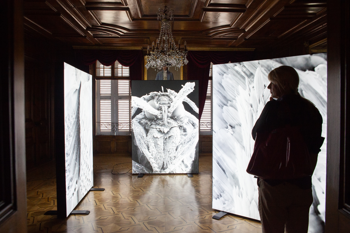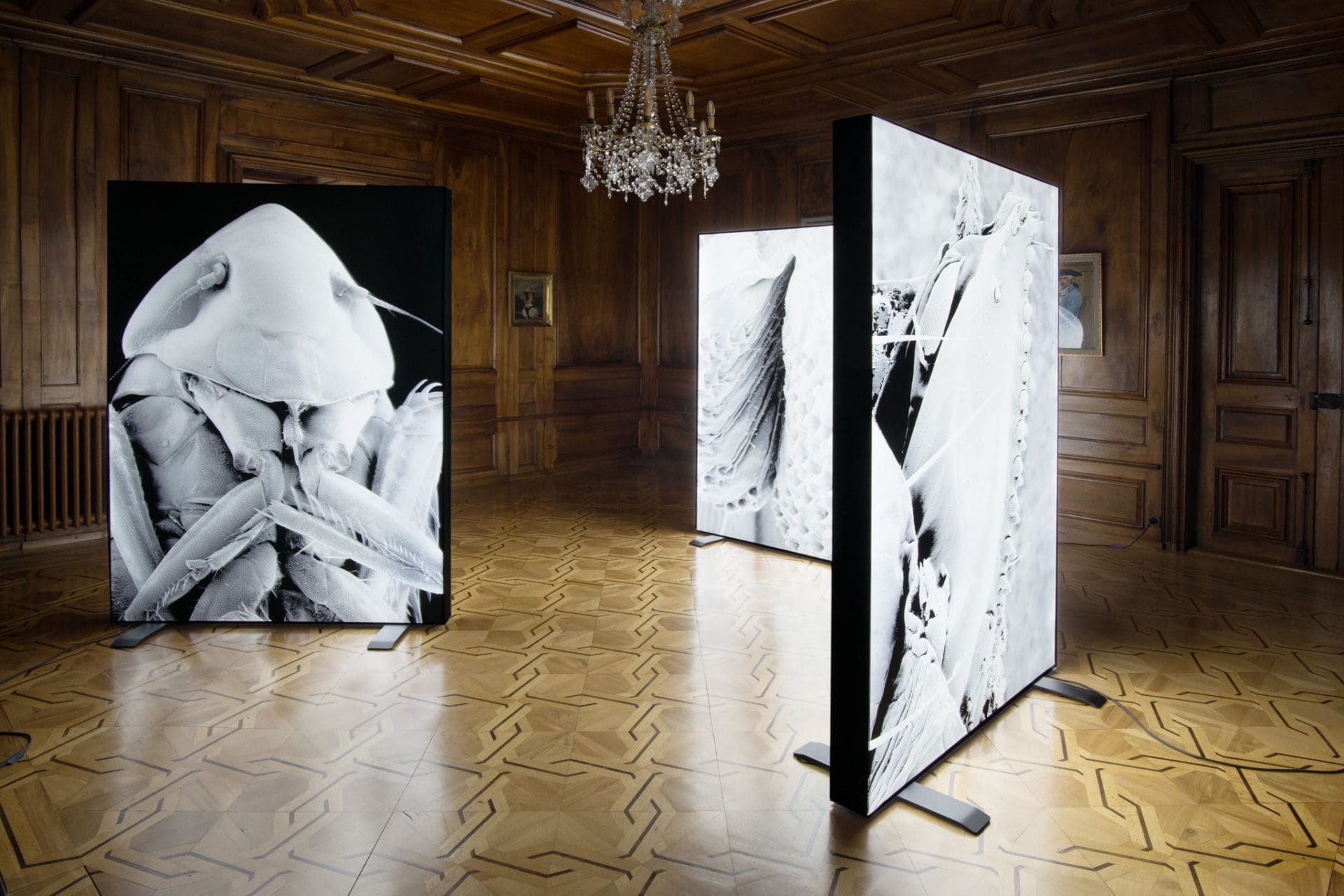 Currently a Bachelor student in Photography at ECAL/Ecole Cantonale d’Art de Lausanne, Elisa Ribeiro sheds light on an unexpected aspect of winemaking. She uses an electron microscope to create a gallery of portraits of insect pests in the grapevines. Re-appropriating scientific tools for artistic purposes, her work questions the very basis of the photographic image as here the shooting process uses an electron beam. Exhibited in the Confrérie des Vignerons in large light boxes evoking the lighting used for microscopic observation, the tiny pests comprising her Nuisibles series seem like giant monsters.