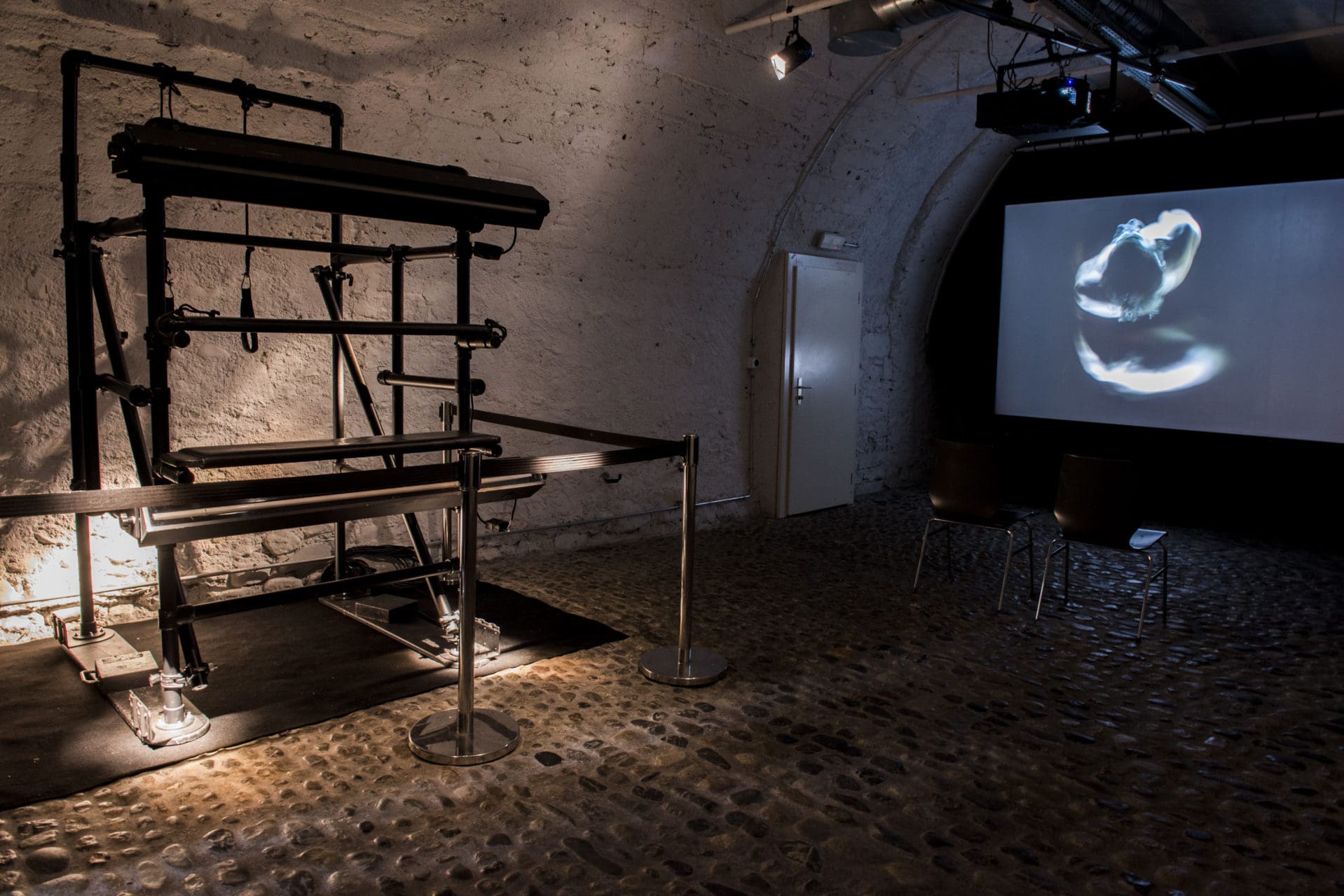 At the crossroads of visual arts and dance, Vacuum is a video installation based on a recent creation by choreographer Philippe Saire, who pursues his explorations into the sensory perception of movement. Thanks to an optical illusion generated by two neon lights, the dancers’ bodies immersed in near-amniotic darkness play on apparition and disappearance to revisit the history of art, from the Renaissance painters to the processes of photographic development and Brancusi’s abstract sculptures.