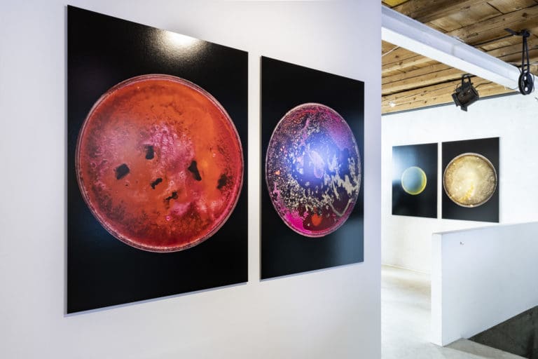 With Unearthed, Rahel Oberhummer focused on microorganisms from the permafrost, a subsurface layer of soil that remains below freezing point throughout the year, in the canton of Grisons. These microbes have been preserved for millennia at sub-zero temperatures in a unique ecosystem which climate change has now put under threat. Scientists at the WSL Swiss Federal Institute for Forest, Snow and Landscape Research have taken samples of them to then grow them in artificial conditions. This Swiss artist took some of these microbes from the lab to her workshop, where she photographed them in their Petri dishes. She monitored their rapid and random evolution. Out of nowhere, life suddenly flourished, forms and colours changed constantly until the resources were exhausted. These abject and attractive compositions became uncontrollable visual subjects.