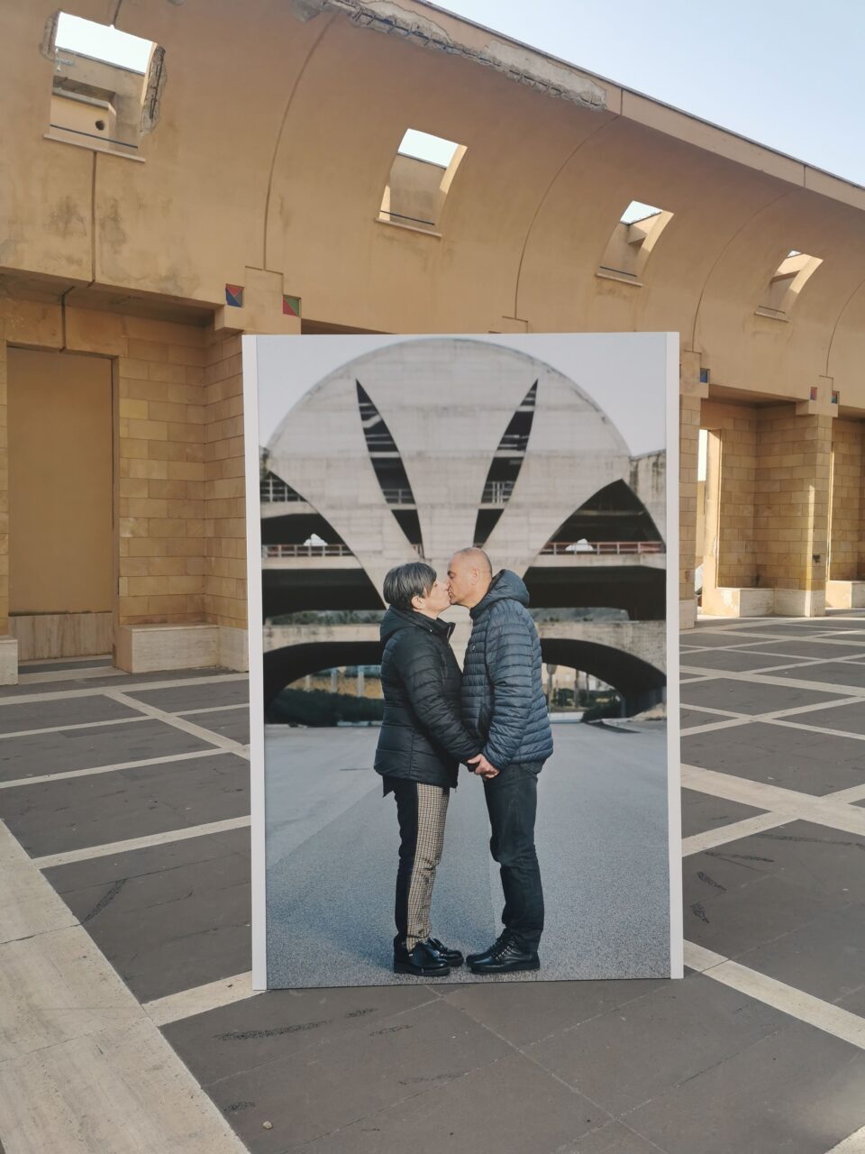 After a year of pandemic-enforced distancing, Gibellina turns back to one of the most human gestures: the kiss. Known for Alberto Burri’s Grande Cretto and its post-earthquake futuristic architecture, the Sicilian town becomes the stage for portraits of couples kissing in its most iconic sites. Riverboom celebrates the resilience of affection, photographing lovers in a theatrical light that envelops both bodies and city squares, treating love as a cherished work of art. Inspired by Gros bisous de la Côte Fleurie, first shown in Deauville in 2020, the project brings intimacy back into public space, offering a tender counterpoint to the strange, distanced times we have all lived through.