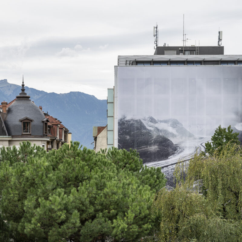 18 / Andreas Gursky / VG Bild-Kunst · Courtesy Sprüth Magers, Aletsch Glacier, Façade BCV (photo © Emilien Itim)