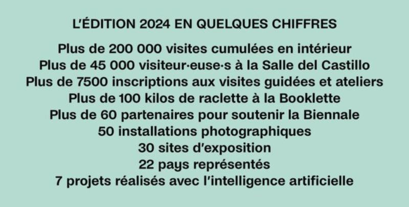 La coproduction d’expositions avec des institutions de prestige telles que la Fondation Henri-Cartier Bresson à Paris, le C/O Berlin, le Kunsthaus de Zürich et Photo Elysée à Lausanne a également grandement contribué au rayonnement et à la qualité artistiques de cette édition.