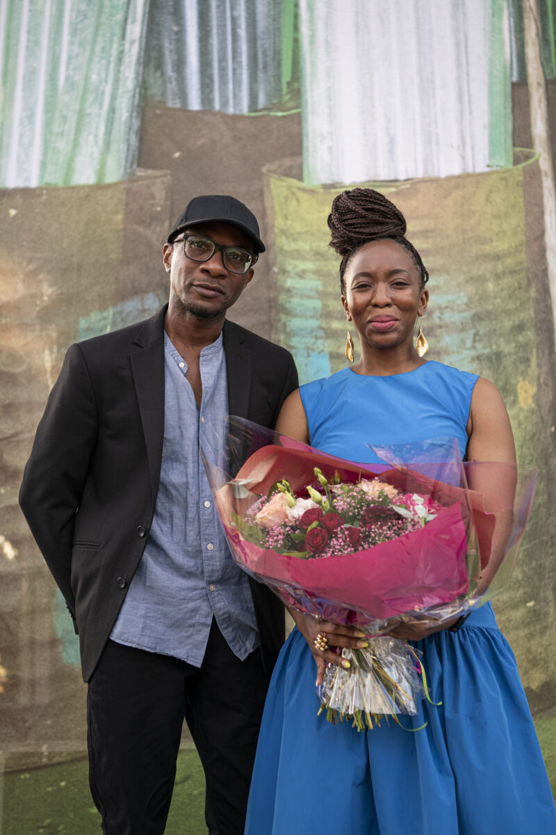 L’écrivain et photographe Teju Cole, président du Jury du Grand Prix Images Vevey 2021/2022 remet le Grand Prix Images Vevey à Lebohang Kganye lors de la cérémonie d’ouverture de la Biennale Images Vevey en septembre 2022.