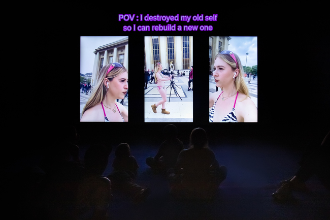 Cash Me Online is a satirical project combining photography, performance, and social media footage. Amandine Kuhlmann creates a hyper-feminine alter ego that she embodies online and during performances to achieve viral fame. She imitates TikTok and Instagram trends or dramatizes her everyday life to get noticed. The artist draws on her algorithm’s suggestions and the female stereotypes portrayed on social media. These images reveal the ambiguities of virtual profiles, between the objectification of the body and the desire for individuality. The installation reflects a generation obsessed with their appearance.